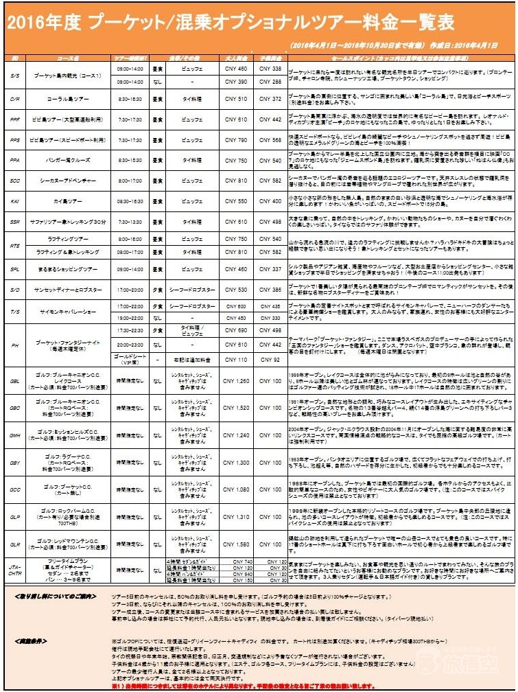 【諸条件】 ロイヤルパラダイス ガラディナー 12/31 4500THB/人 ディーバナプラザ ガラディナー 12/31 4300THB/人 12/22-1/10 最低5泊以上 ヴィジット ガラディナー 12/31 7500THB/人 カタタニ ガラディナー 12/24 & 31 6300THB/人 JWマリオット 12/24-1/10 最低4泊以上 |