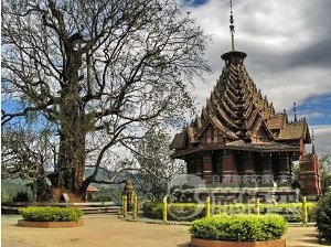 景洪から130kmの孟海県の景真山にある1703年に建てられた長さ17mの仏教塔。レンガで造られた高さ17.2mの主塔と高さが6mの8つの小塔、計9つの塔からなる。孟海県の重要文化財に指定。