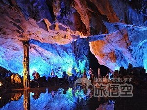 蘆笛岩は桂林市の西北郊外にある光明山の山腹に位置しており、市内中心から5km離れたところにある。岩洞の深さ240m、遊覧コース500m。洞内には数多くの鍾乳石、石筍、石柱、石幔、石の花が見られ、色と言い、形と言い、目にも鮮やか。それぞれ趣を異にする景観が楽しめる。獅林朝霞、紅羅宝帳、盤龍宝塔、原始森林、水晶宮、多種多様の精緻な美を競いあって、さながら大自然の芸術に彩られた宮殿に入った感がある。桂林市内観光のハイライトです。