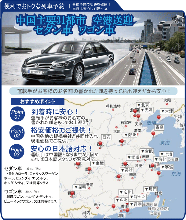 ※車輌利用は各都市の空港⇔市内間とさせて頂きます。市内以外で追加料金がかかるエリアの場合は、別途ご連絡させて頂きます。また空港お出迎えの場合、市内の鉄道駅へのお送りも可能です。