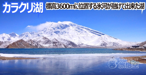 カシュガルから南西に約200km、標高約3,600mのところに位置する湖。近くの山の氷河が融けて出来た湖。 近くにはカザフ族やキルギス族など多くの民族が住んでいます。快晴の日にはコングール峰(7,719m)とムスターグ・アタ峰(7,546m)が湖に綺麗に移る姿も見ることが出来ます。