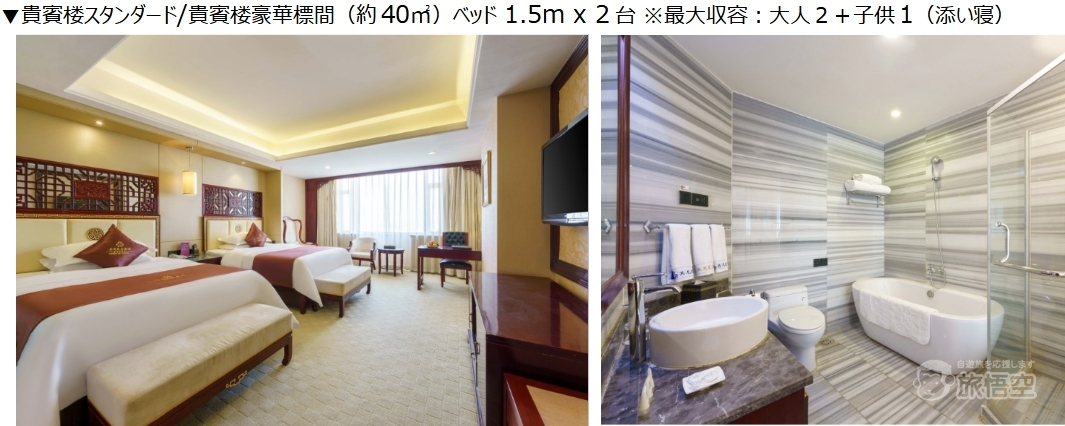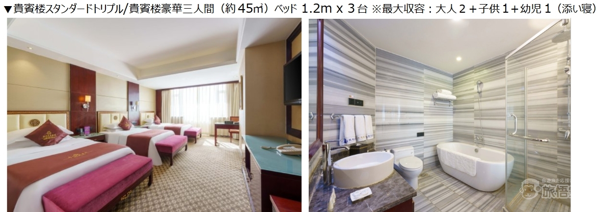 ・ 子供料金は、旅行開始日当日を基準に満2才以上~12才未満の方に適用いたします。幼児代金は旅行開始日当日を基準に、2才未満で航空座席及び客室におけるベッドを専用では使用しない方に適用となります。★また子供・幼児は身長120cm未満を対象としてお見積もりしております。120cm以上の場合、現地にて入場券が実費かかります★添い寝のお子様の朝食代は含まれません。ホテルにより異なりますが、通常4-6歳未満無料、それ以上は50-100元/人相当が現地でかかります ※実際にはホテルが請求しなかったというケースが多いのが実情です★