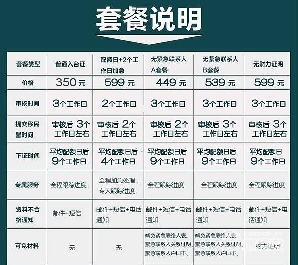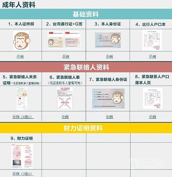 | 入台证 / 台湾通行証 | 1人 | 通过我们订机票,酒店等 | |