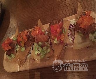 ~サーモン・ターター~、~海老&アボガドのピンチョス~、シトラスビネガーが爽やかで美味し