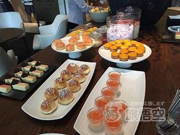 日本人滞在客の多い「New World Shanghai Hotel」。地下鉄2号線・3号線・4号線とアクセスも便利です。ホテル1階ロビーにある「CHA Lounge」では、毎日14:00~17:00までアフターヌーンティーが楽しめます。毎月季節のフルーツをテーマにした、アフターヌーンティーがあります。春は苺、6月はマンゴー、今月はピーチです。