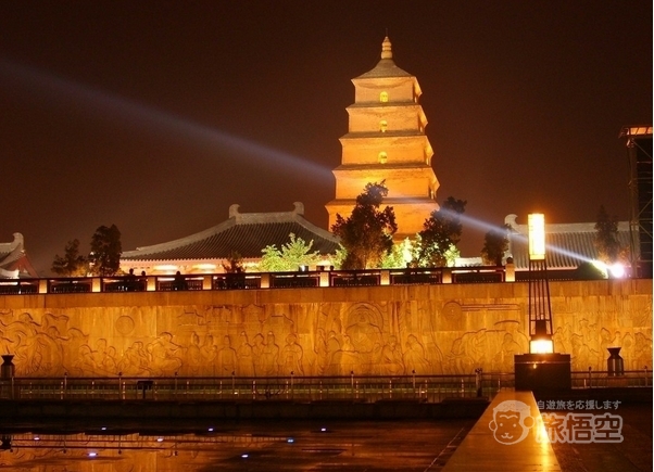 西安市から南へ4km離れた大慈恩寺の中に聳え立っており,中国の仏教名塔の一つ。西暦652年に創建された当初は5階建てで高さ60mであったが、西暦704年に10階に増築された。その後戦乱で破壊され、西暦930年に7階に再建され,高さ64mとなった。楼閣式の煉瓦造りで, 煉瓦を研磨して隙間を合せる という建築法を採用。